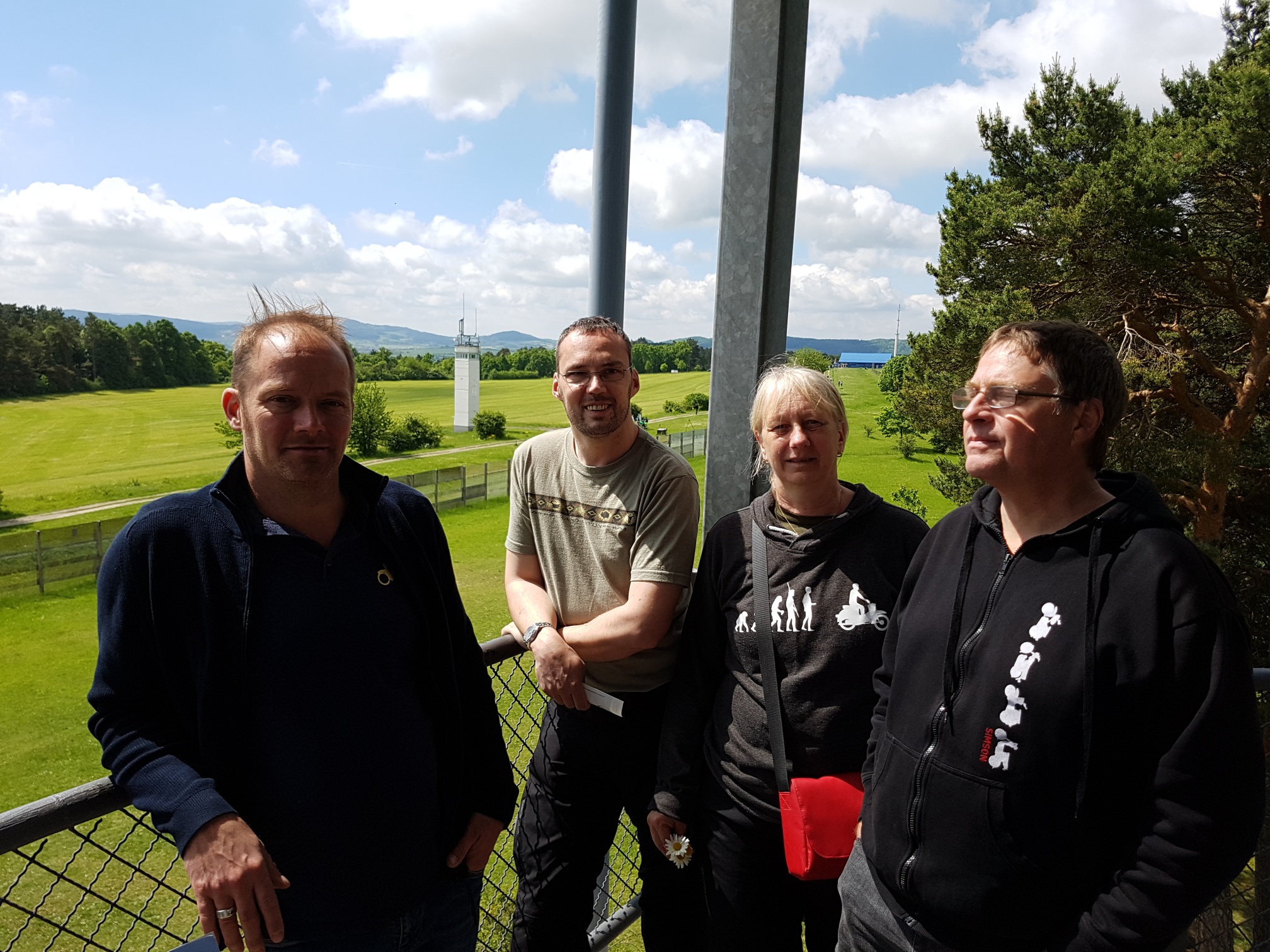 Donnerstag früh mit dem langen Abend in den Knochen geht es bereits um 9 Uhr auf die Straße. Thüringen begeistert uns bald mit super Straßen, toller Natur und wunderschönen Dörfern. Unser erster Halt ist der Checkpoint Alpha, ein Grenzmuseum, das wir besuchen und selber sehen können wie sich früher der Osten und der Westen an der innerdeutschen Grenze beäugt haben.