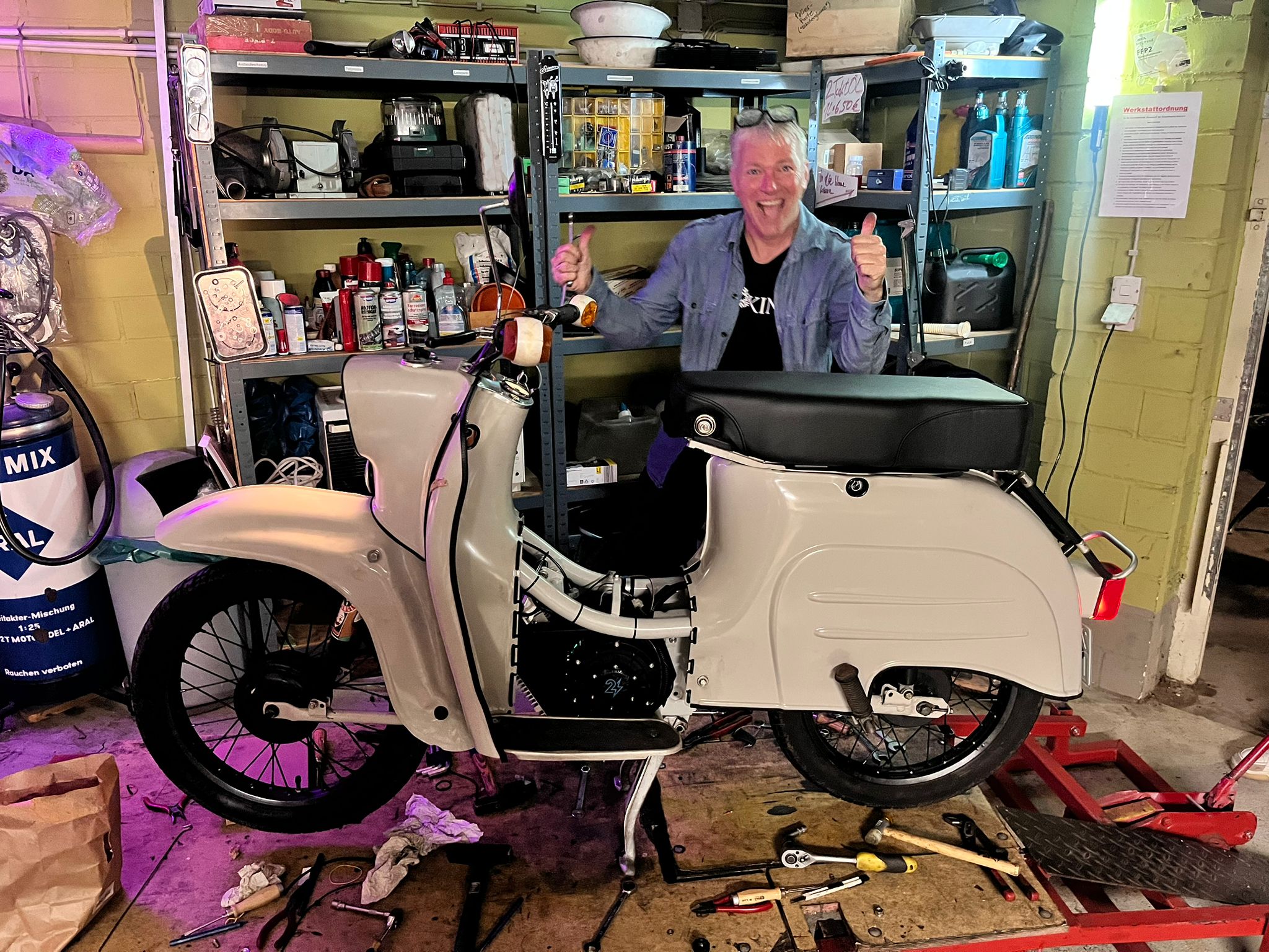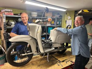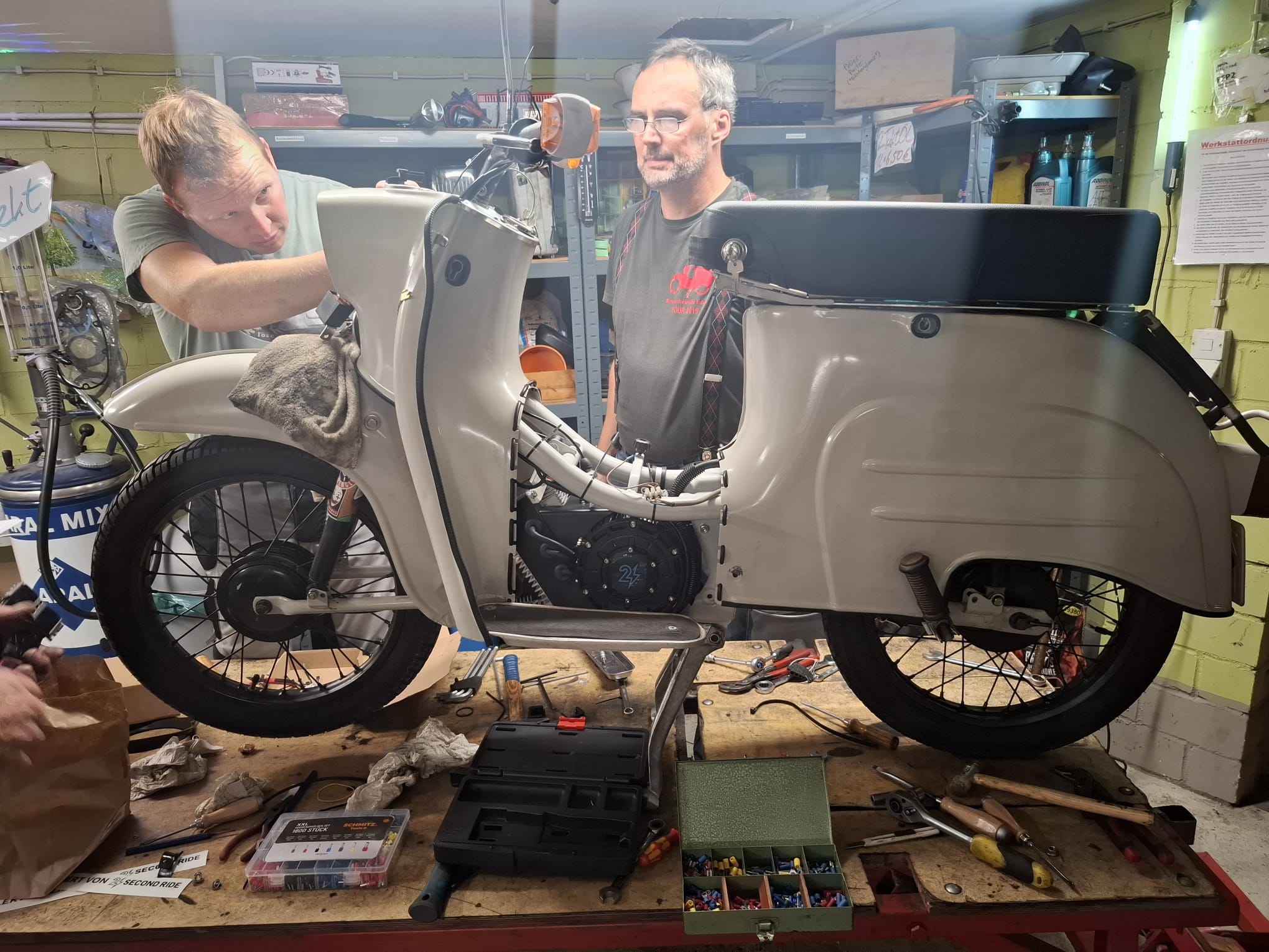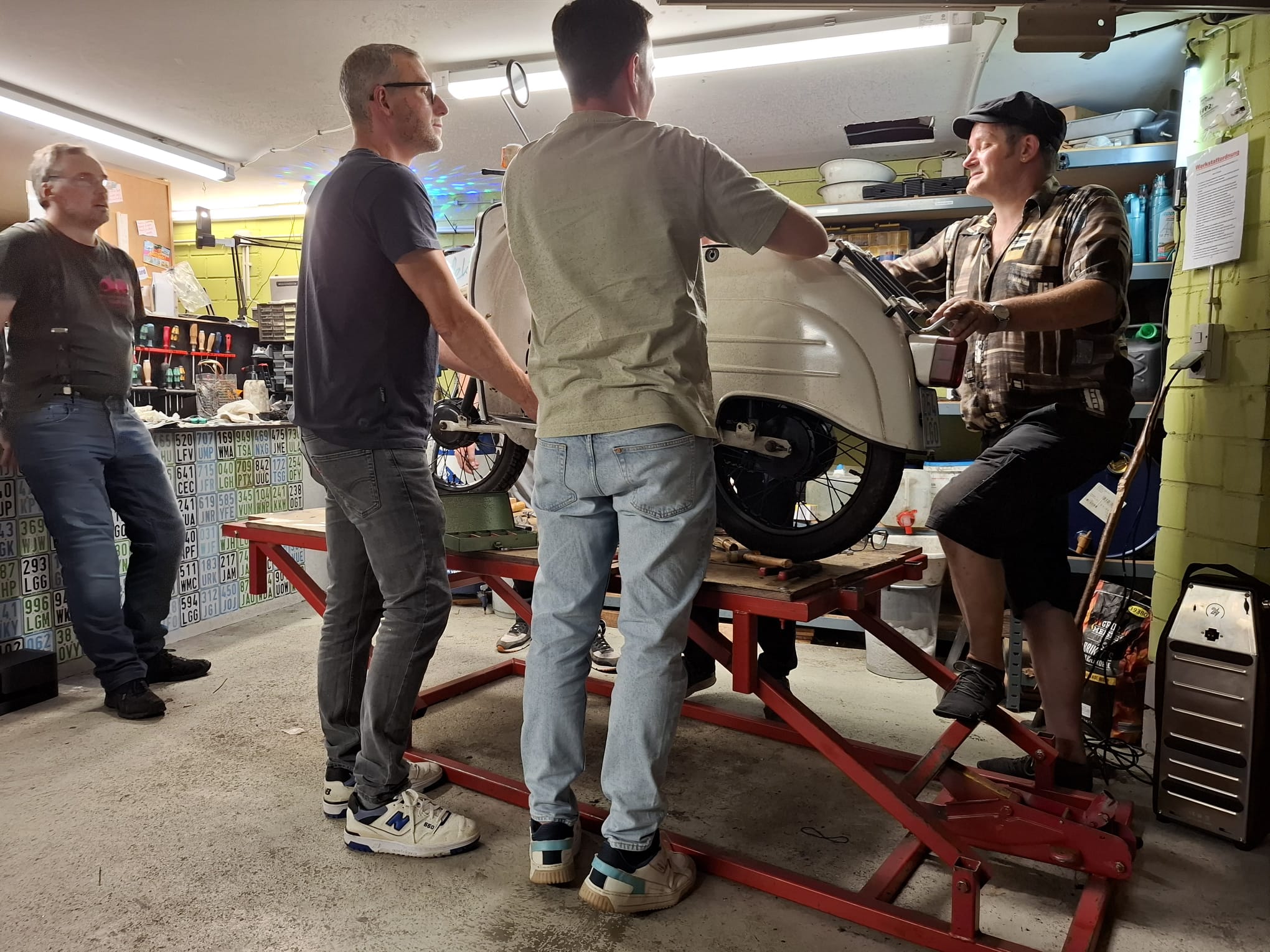 Am Mittwochabend, dem 4.9., wurde unsere Schrauberbude wieder zum Zentrum konzentrierter Tüftelei. Ab 19 Uhr stand ein besonderes Projekt auf dem Plan: Der Rahmen von Andrejs Schwalbe sollte getauscht werden – und das nicht allein. Gleichzeitig wollten wir den SecondRide-Umbaukit einbauen und damit den Grundstein für eine elektrische Zukunft legen.