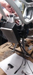 Bis 22:05 Uhr hatten wir ordentlich was geschafft: Der neue Rahmen war montiert, das Fahrzeug wieder komplettiert und der Elektromotor eingebaut. Sogar die ersten Vorbereitungen für eine Probefahrt konnten wir noch anstoßen – ein echter Meilenstein für das Projekt.